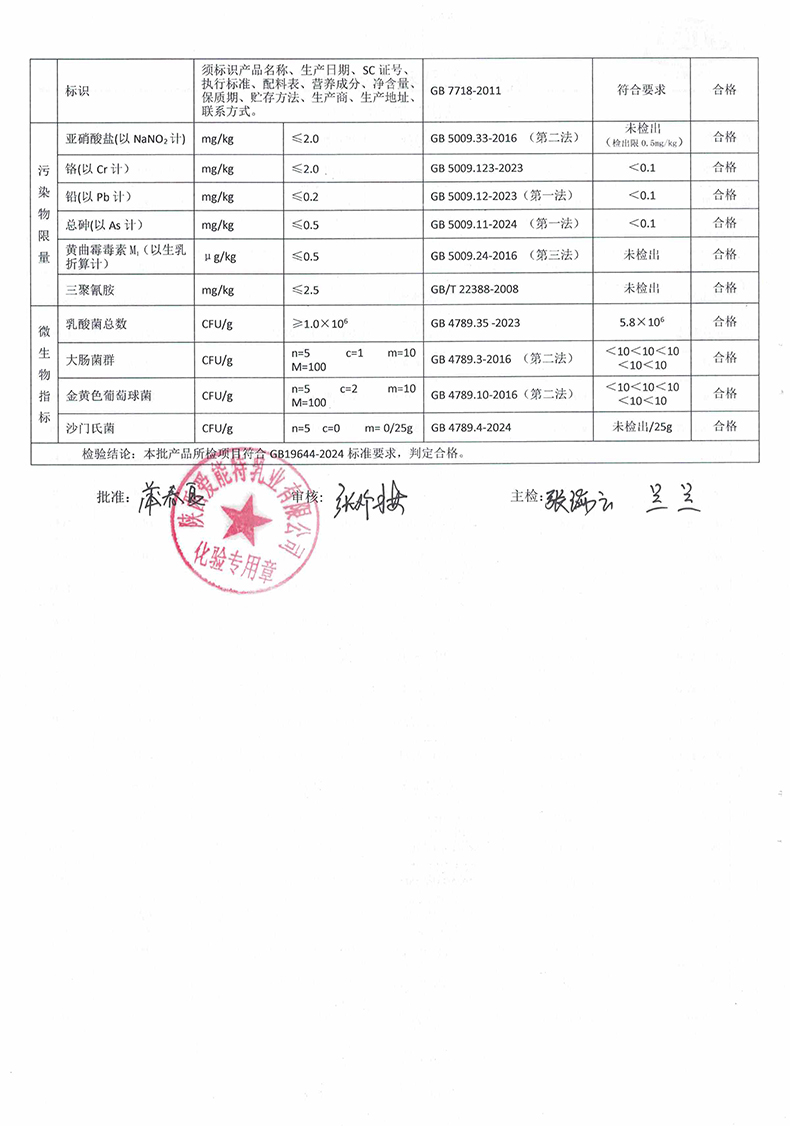 [下一页] 普尔纽特乳酸菌配方羊奶粉320克2025年8月2日检验报告