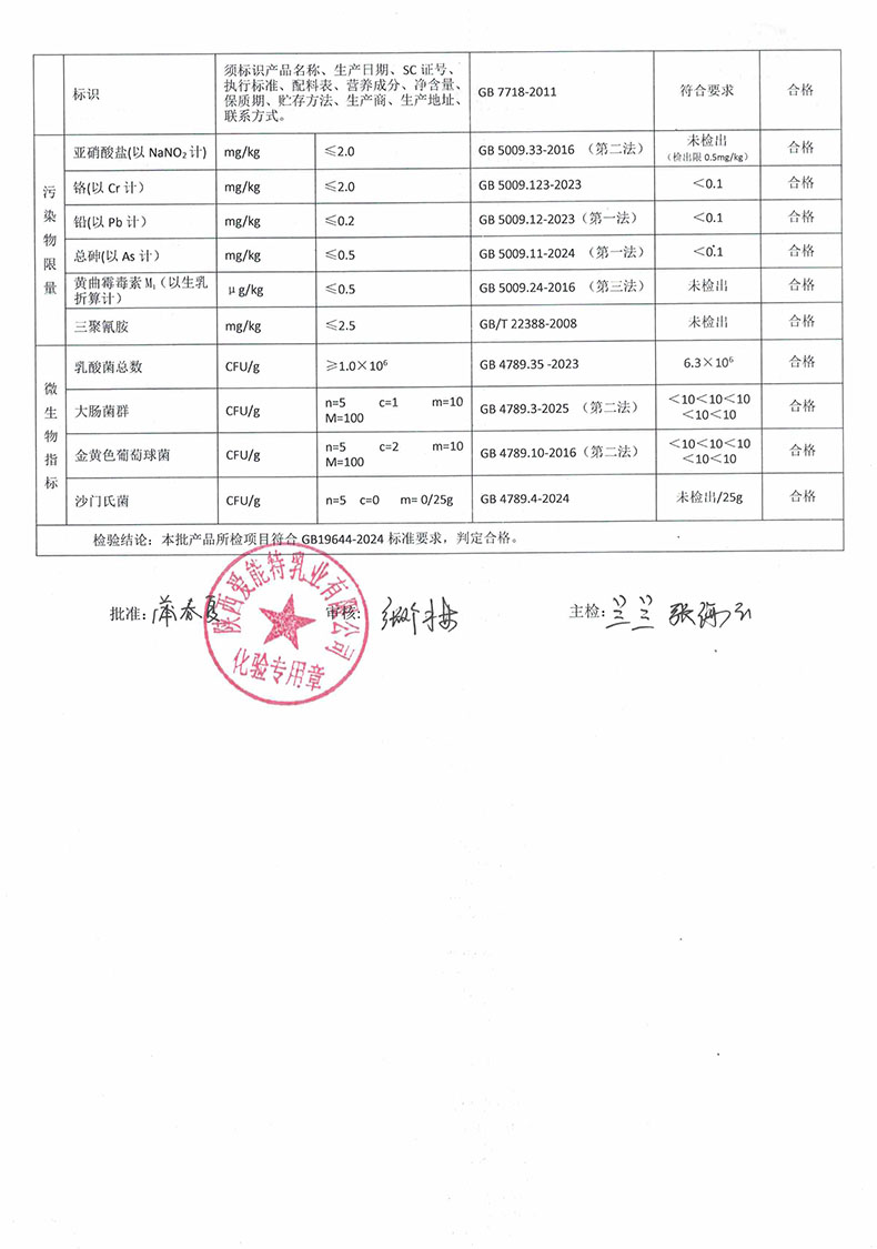 [下一页] 普尔纽特中老年乳酸菌羊奶粉400克2025年8月19日检验报告