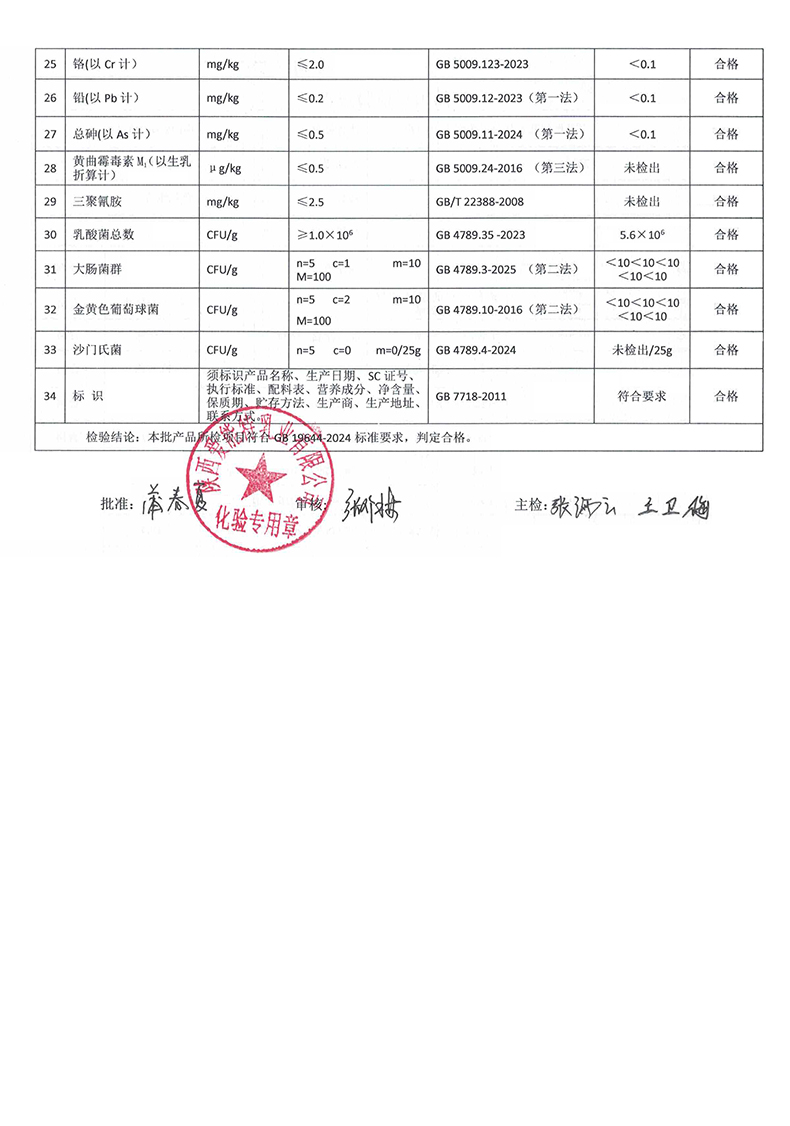 [下一页] 普尔纽特中老年初乳专利益生菌配方羊奶粉700克2025年12月10日检验报告