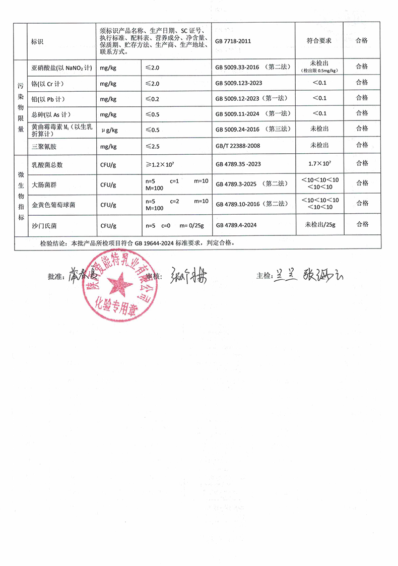 [下一页] 羊跑跑纯羊奶粉600克2025年9月12日检验报告