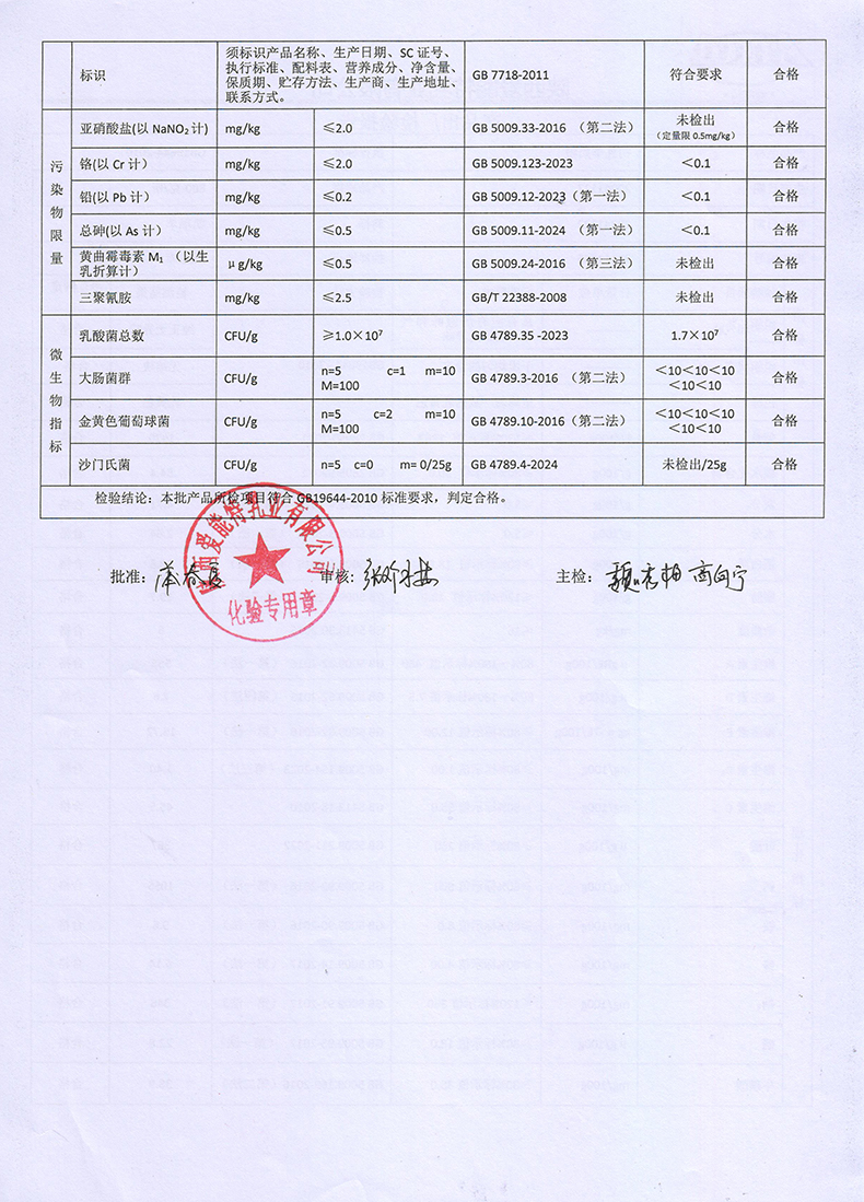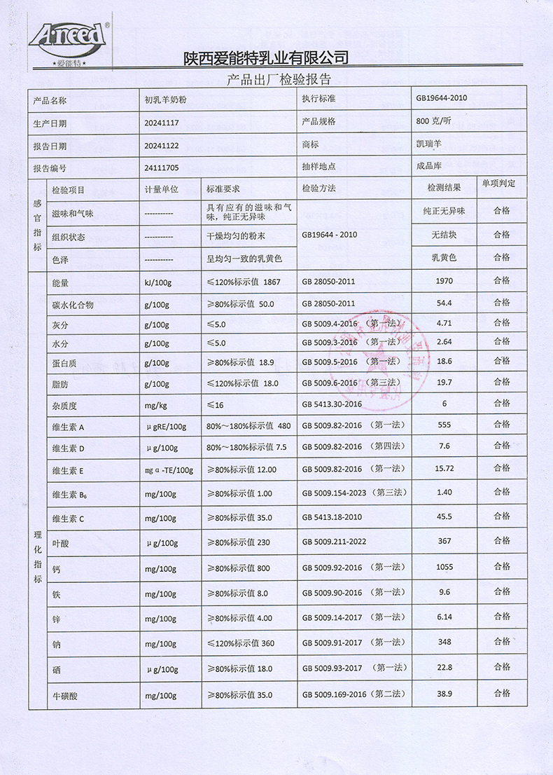 凯瑞羊初乳羊奶粉800克2024年11月17日检验报告