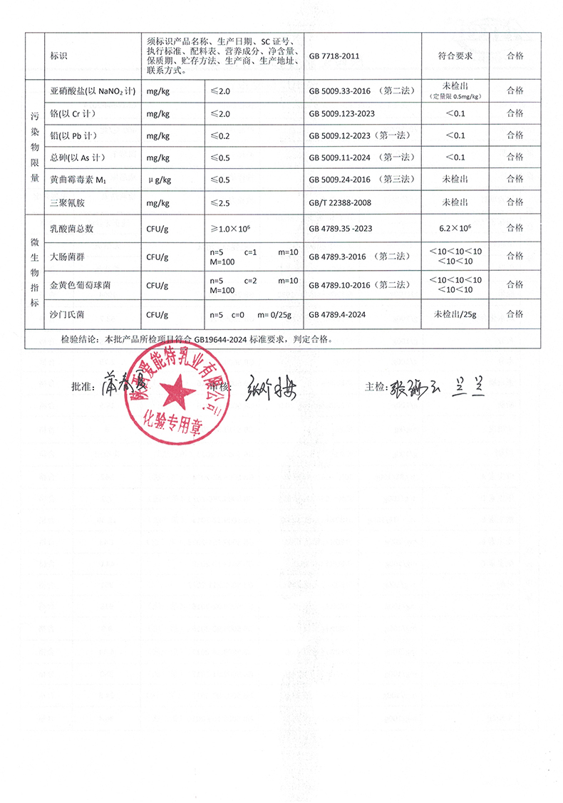 [下一页] 凯瑞羊纯羊奶粉908克2025年7月4日检验报告