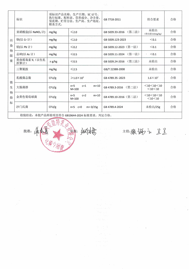 [下一页] 凯瑞羊有机纯羊奶粉380克2025年8月28日检验报告