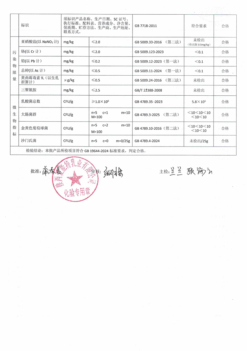 [上一页] 凯瑞羊初乳羊奶粉800克2025年11月10日检验报告