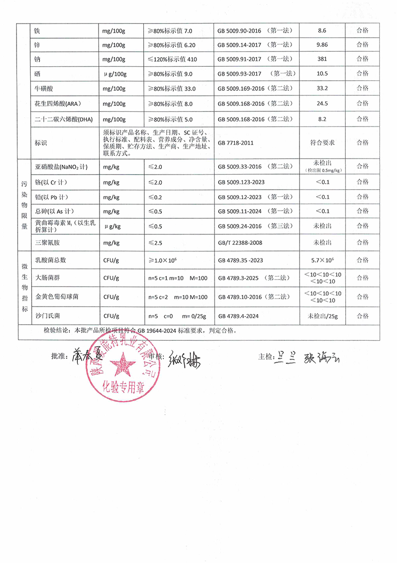 [上一页] 凯瑞羊有机纯羊奶粉380克2025年11月5日检验报告