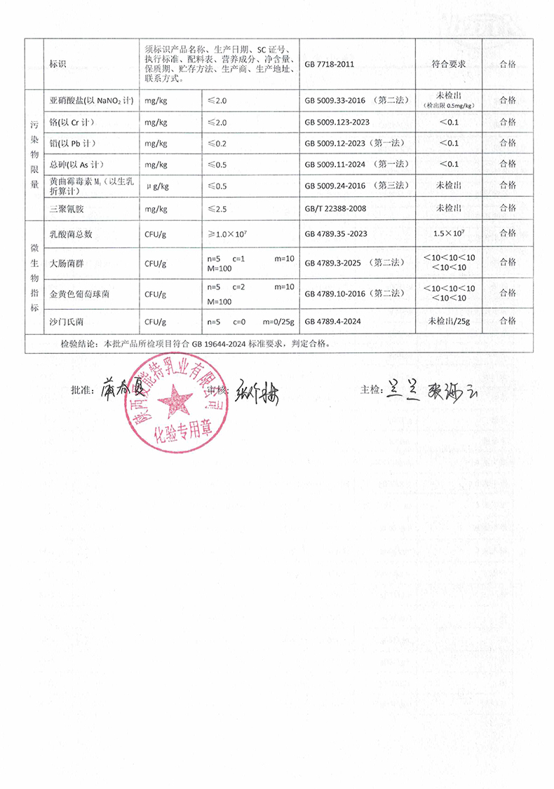 [上一页] 凯瑞羊纯羊奶粉400克2025年12月2日检验报告
