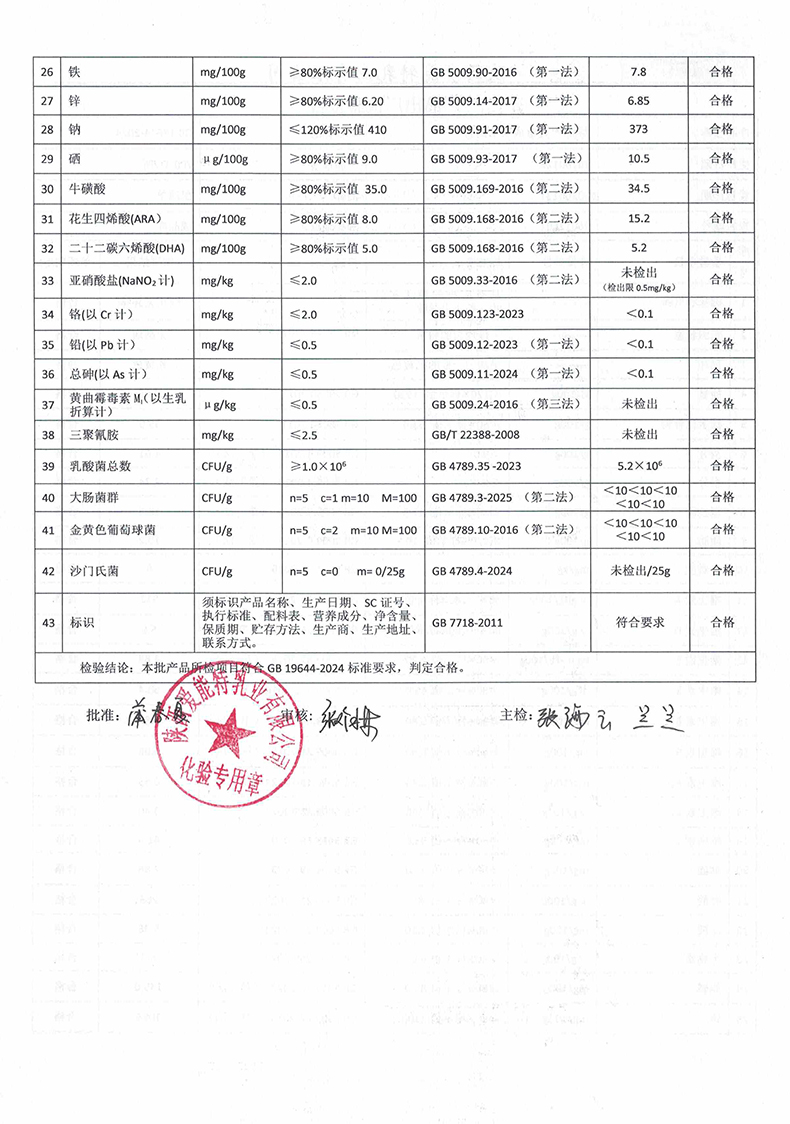 [上一页] 凯瑞羊有机纯羊奶粉820克2026年1月29日检验报告