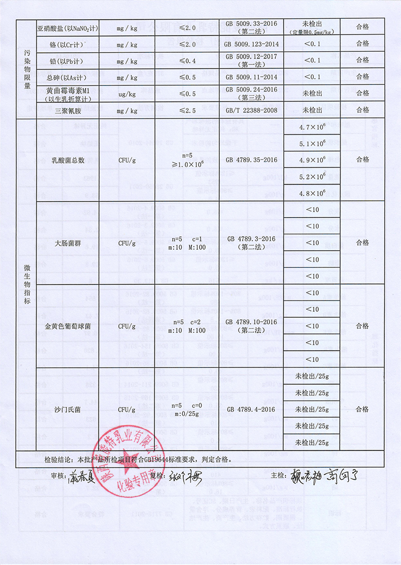 普尔纽特乳酸菌配方羊奶粉375克2021年5月13日检验报告