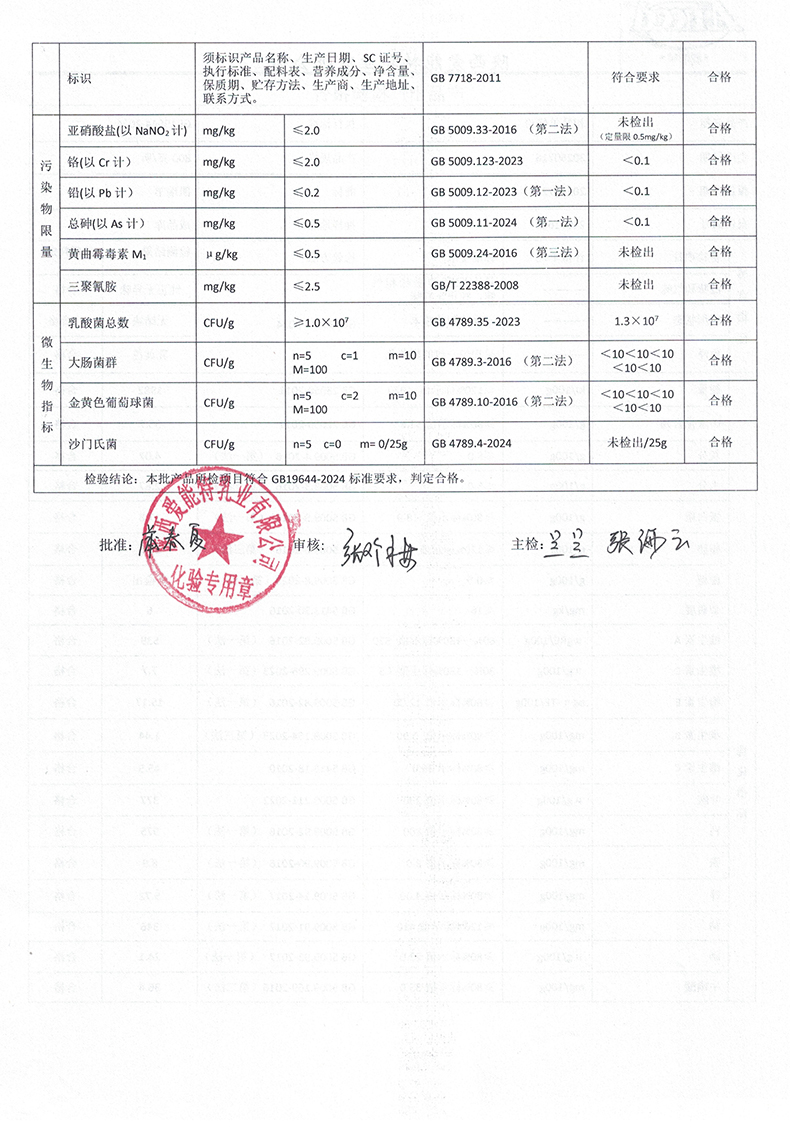 凯瑞羊初乳羊奶粉800克2025年7月16日检验报告