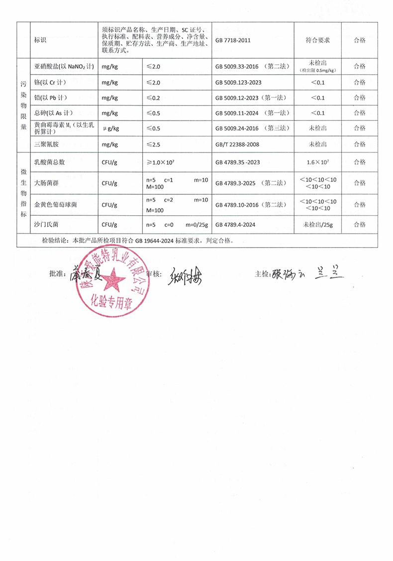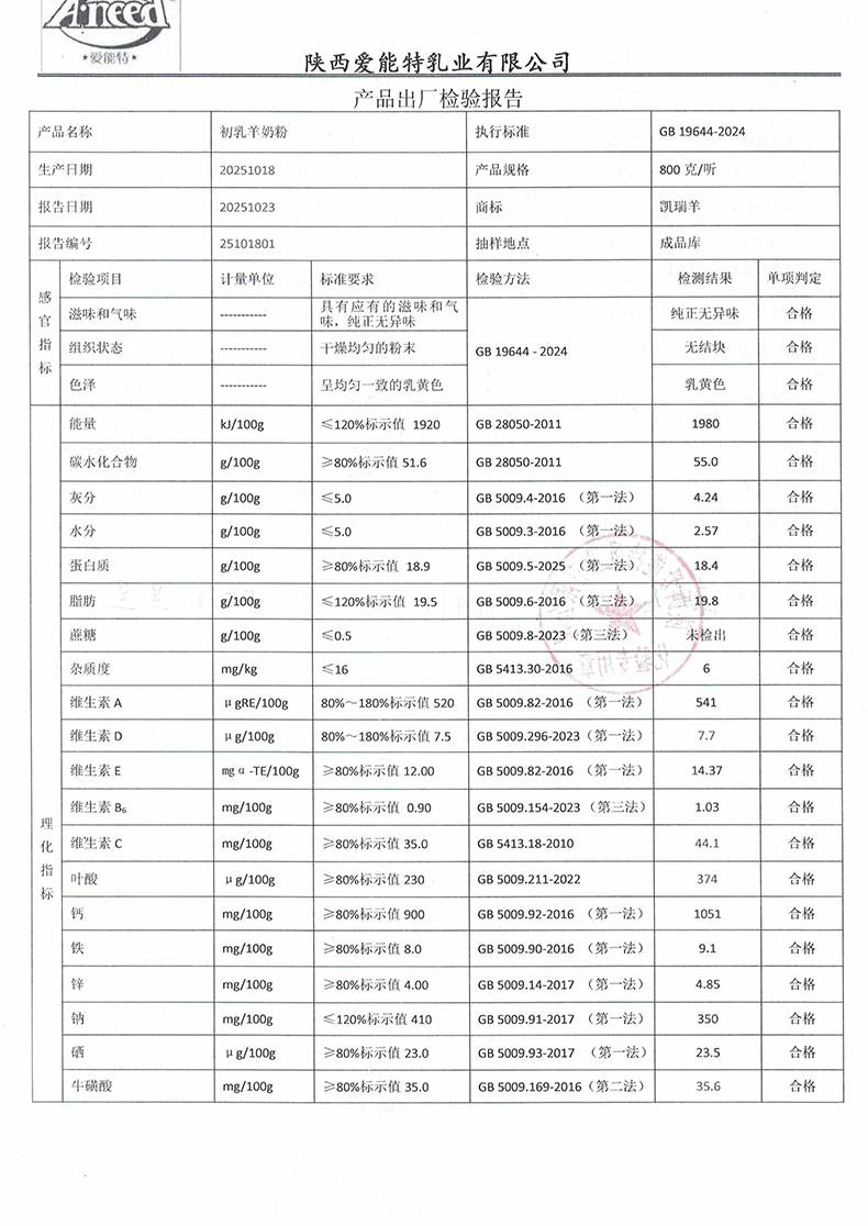 凯瑞羊初乳羊奶粉800克2025年10月18日检验报告