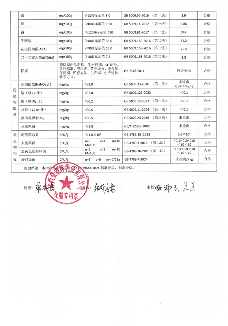 [下一页] 蓓佑高儿童成长配方奶粉800克2025年2月3日检验报告
